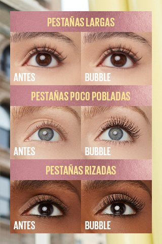 MASCARA DE OJOS COLOSSAL BUBBLE A PRUEBA DE AGUA QUE DA VOLUMEN INTENSO Y COLOSSAL A TUS PESTAÑAS